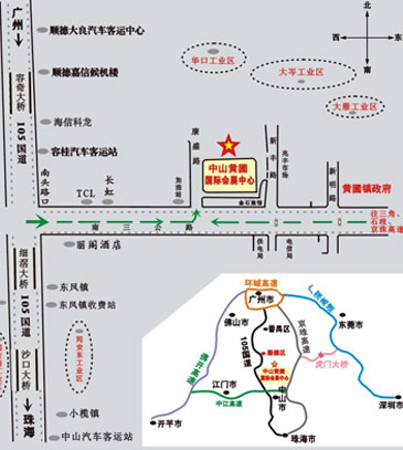 国际会展中心座落于黄圃镇中心区域,东接京珠高速,西连广珠西线和广珠轻轨,占地72亩,建设面积1万平方米,会展中心绿化完善,13000多平方米的中心广场宽广大气, 约有5000㎡的面积可根据需要搭建大型室外展区,并配置多个大型停车场,总投资4000多万元,可以举办600多个国际标准展位的大型展览。整个展馆采用钢网架和玻璃幕墙结构,网架错综交织,玻璃幕环回采光,设计新颖大气,时尚高雅,是目前中山市最高标准的展馆之一,成为了黄圃镇的标志性建筑。是各种会议、礼仪,庆典、演艺活动极佳的举办场所。