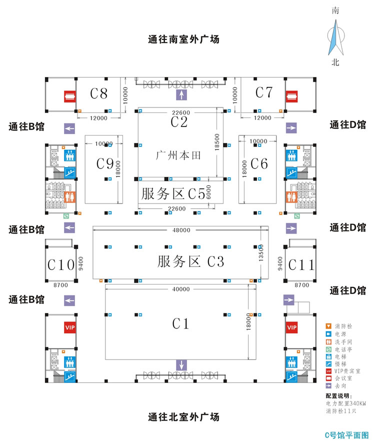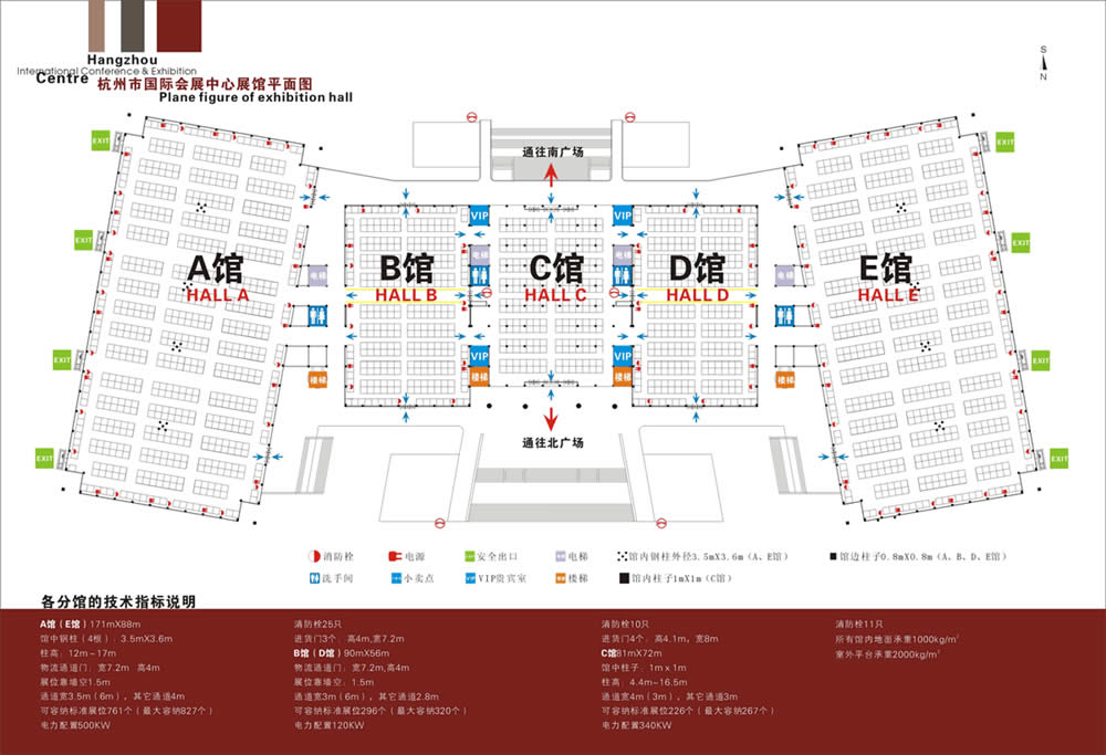 展馆承重: ABCDE 馆及二楼平台通道:1 吨/平方米