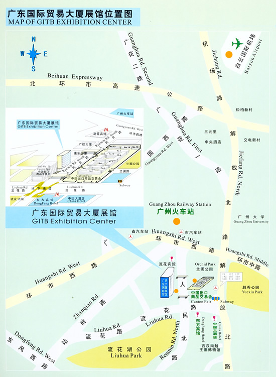 参展商可通过的士(可乘坐的的士直接到展馆门口下车),地铁(乘二号线的在越秀公园站下车,乘一号线的先到公园前站换乘二号线,再到越秀公园站下车),巴士(乘所有到广州火车站的巴士在火车站下车)等交通工具到达展馆,交通十分便利。