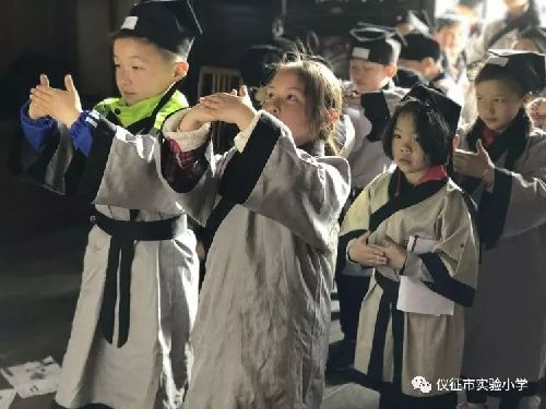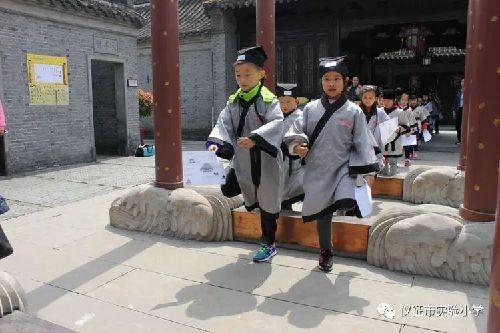 他们抬脚聚步跨龙门,体验古典风俗;揖手躬身拜孔子,学习尊师传统。