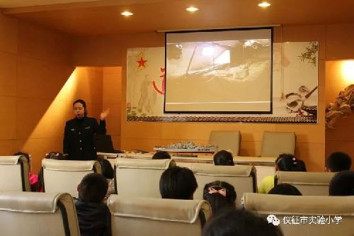 英姿飒爽的解放军姐姐作了“心系海军、梦逐深蓝”主题教育讲座,给大家展示了海军军旗,并对舰艇、潜艇、航母等海上武器装备如数家珍。同学们听得津津有味!