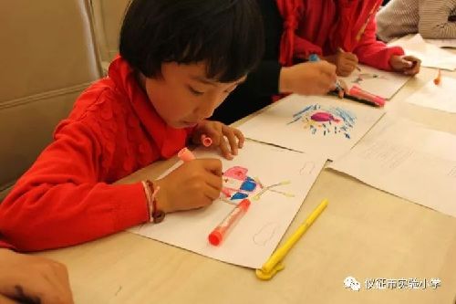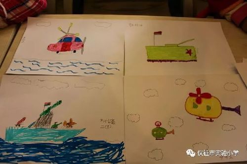 孩子们纷纷拿起画笔,描绘他们心中的海军蓝图,蓝天白云、飞机舰艇、蔚蓝的大海、飘扬的旗帜……五彩缤纷、跃然纸上。
