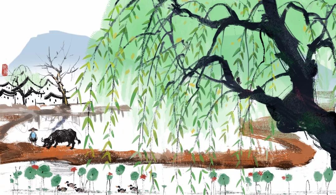 绿柳如烟绕水栽,谁人轻踏岸边苔?
