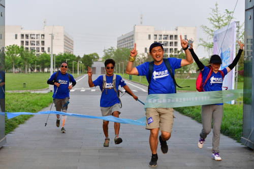 欧普照明华北大区经销商张永旺(左)公益徒步过程一直坚持不懈达到终点
