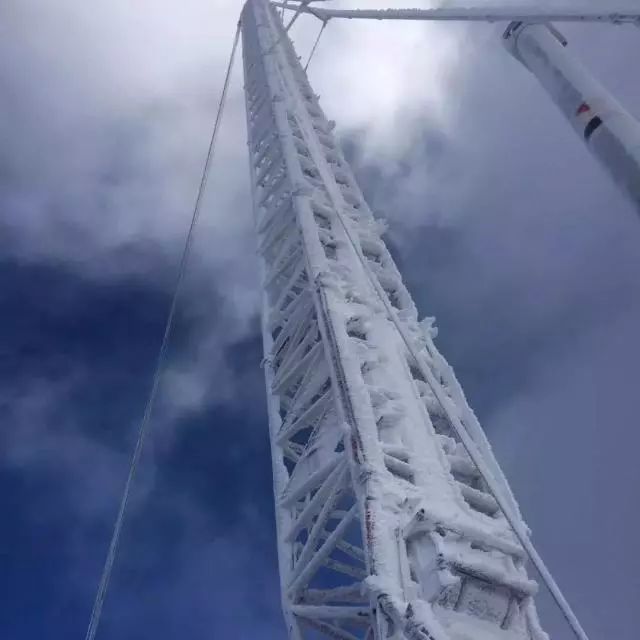在海拔3600米的地方工作不是一件容易的事,尤其是整个工期大部分都处于冬季,更让施工难上加难。这里最低温可以达到零下25℃,最大风速达到25米/秒,风一吹过,整个履带起重机就会被裹上一层厚厚的白色外衣,20厘米的冰层一点都不稀奇。再加上山上多雾,抬头望去,高大的吊臂很快就隐藏在了浓浓的雾里。
