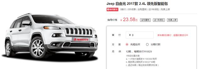 通过神州买买车购买Jeep自由光2017款 2.4L 领先版智能包,选择0首付购车,月供仅需6800元左右,和闺蜜一起穿越山和大海,自拍耍酷吧。