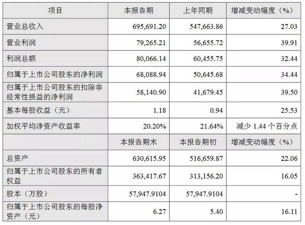 欧普照明4月17日晚间公布了2017年度业绩报告。年报显示,2017年,欧普照明实现营业收入69.57亿元,同比增长27.03%;实现利润总额8.01亿元,同比增长32.44%;实现归属于上市公司股东的净利润6.81亿元,同比增长34.48%。