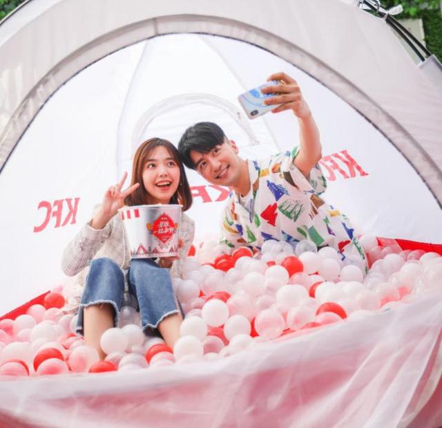 野营帐篷内铺满了海洋球,还有星空灯,让人感受到浪漫和梦幻。逛街累了,来帐篷小憩,和朋友一起躺在帐篷里,玩玩自拍,感受浪漫、梦幻的氛围。肯德基的这个都市野营体验,让身处钢筋混凝土城市的人们感受到了别样的野营,享受到了不一样的周末时光。