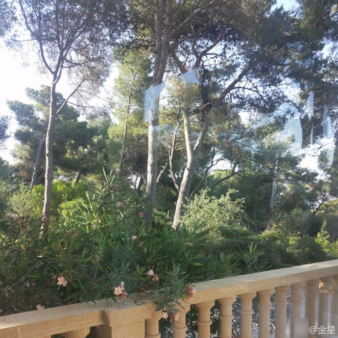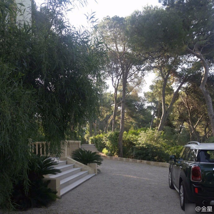 开心的金星随手拍了家里的后花园,滤镜都没加直接发出来。花园里种了许多郁郁葱葱的树,让人很难联想到是住宅,更像是一个度假村。