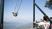在悬崖边推秋千月薪可上万 这个岗位你敢试试吗? 这座悬崖秋千长4米,就修建在悬崖边,游客来体验时,将被绑着安全绳的工作人员荡出悬崖,以180度的角度飞出去。