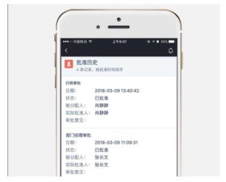 批准历史按最新的批准步骤倒序排列,分别显示步骤名称及摘要。