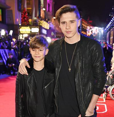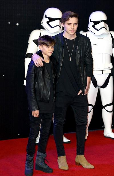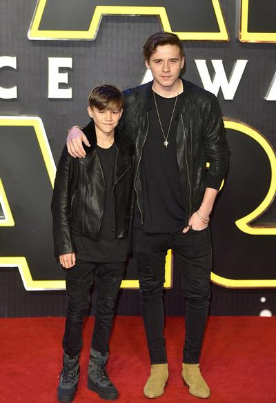 最近,贝克汉姆家的大儿子布鲁克林和二儿子罗密欧出席了电影《星球大战:原力觉醒》的伦敦首映礼。当晚,没有父母的陪伴,布鲁克林和罗密欧照样表现大方,两人身穿机车装,手插裤兜,帅气任拍。