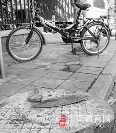 记者采访发现,很多途经此处的市民并不觉得路面滑,除了人行步道方砖,还有方形步道砖。环卫工人说,这样的方砖有防滑功能,记者走在上面,确实也没觉得有多湿滑。距离有血迹的地点不足两米处,人行步道的方砖上面则有一块巴掌大的冰块,有人分析男子可能是踩到这块冰造成的倒地。