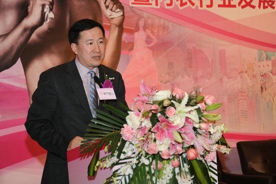图为中国针织工业协会会长杨世滨致辞