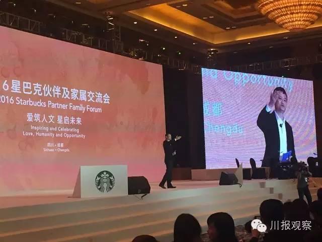 舒尔茨一上台就说,这次来成都参加星巴克伙伴大会,是他最近很多年来最骄傲和感动的时刻,他在台下被员工及其父母的故事感动得两次落泪。
