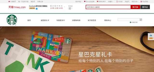 其三,星巴克天猫旗舰店在线上售卖礼品券,优化了用户体验。