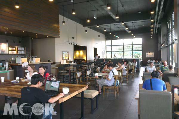 星巴克店面在木质建材包覆下,显得沉静、悠閒。(摄影/陈冠鑫)