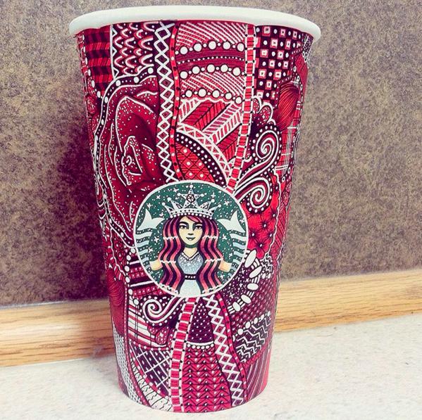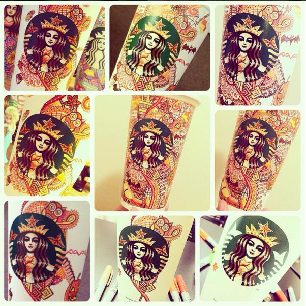 不过,这位 19 岁的女孩却为它找到了新的用途。她平时就喜欢在各种东西上写写画画,设计出各种各样美丽的图案,因为受到一位叫 Kristina Webb 的艺术家影响,将星巴克杯子变成她的创作载体。