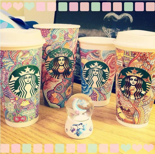 每次喝完咖啡以后,她都会将杯子留下,洗净晾干,然后拿出填色笔开始了自己的创作之旅。她将画好的杯子展示在自己的 Instagram 上,最受欢迎的作品目前已收获了超过 12,700 个赞,完全出乎她的意料之外,下面我们一起来欣赏一下她的作品。