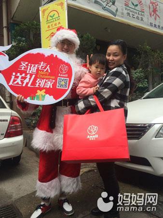 12月19日,安奈儿圣诞老人带上满满的大礼包逐个送到每一个小朋友家庭的手上。每到一个家庭,小朋友们都是大大的惊喜,收到礼物更是开心不已,欢快地围着圣诞老人要合影。会员家长们对这样的送礼形式都非常乐于接受,并表示往后还会继续参加此类活动。