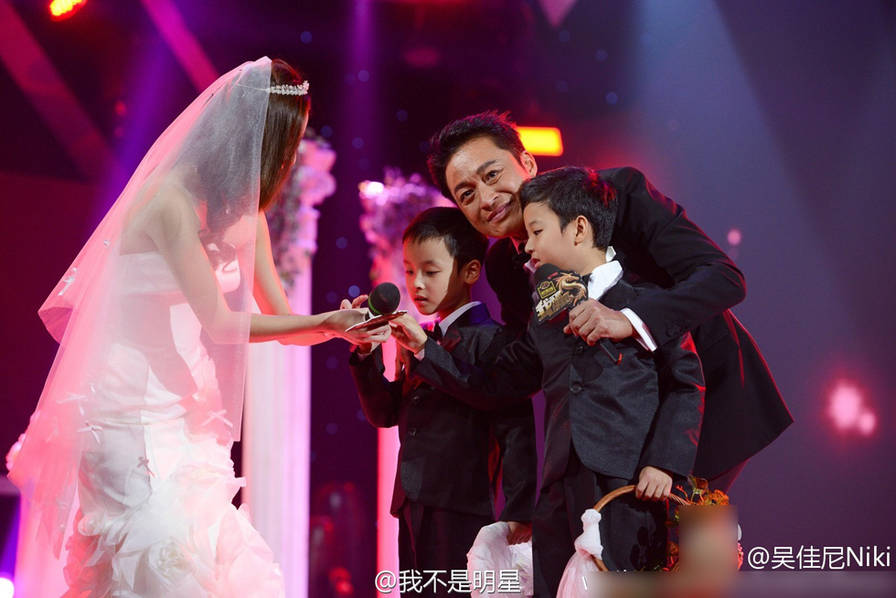 53岁马景涛与小21岁的娇妻吴佳妮结婚八年,恩爱幸福。近日,两人在节目《我不是明星》补办婚礼,夫妻俩甜蜜接吻,相拥而泣。两个帅气的儿子也当起了小花童,一家幸福美满。吴佳尼自曝两人结婚时马景涛甚至都没求过婚,虽然有准备婚礼,但两次都是在准备好时却发现自己怀孕了,因此婚礼都没办成。马景涛坦言,“现在已经过去8年,我心里一直觉得欠佳尼的就是一场婚礼了。 ”