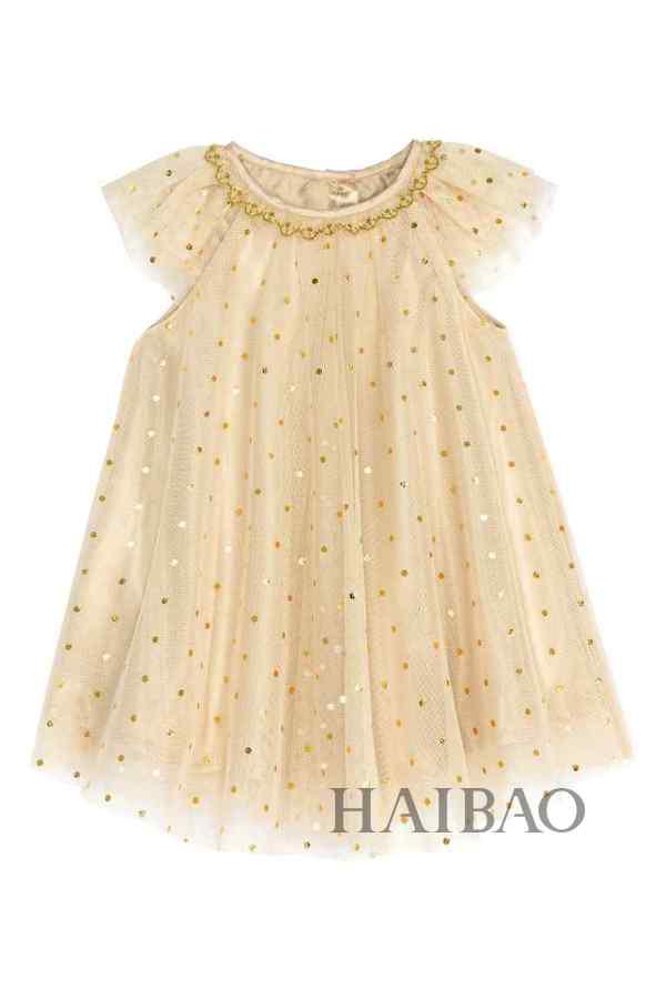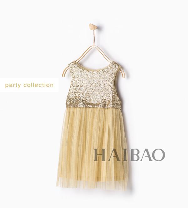 金色礼服裙不仅能制造Bling Bling的效果,更能和白色的婚纱颜色搭配得相得益彰。身着金色花童裙的小宝贝就像闪闪发光的小天使,为婚礼制造出闪亮温馨的氛围。