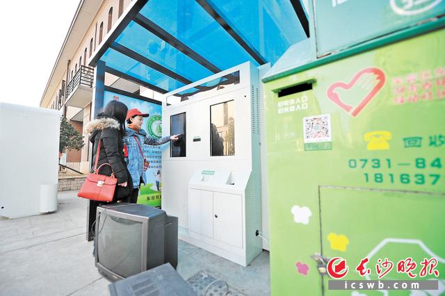 这得益于该社区实行的多方合作垃圾分类回收办法。1个月前,社区、周边15个商店和湖南乐享乐投环保科技有限公司达成合作,鼓励居民分类处理可回收垃圾,并建立相连的网络系统。居民把电池、塑料、玻璃制品等废品投入垃圾分类机,或将大件的废旧电器交给回收员,获得相应积分,商店再通过系统用积分抵扣居民的购物款,环保公司将废品送至专业回收厂家后,按照商店所抵扣的积分给商店打款。而商店因为积分可以吸引更多顾客,也很乐于这样做。