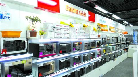 杭州一家家电卖场内,格兰仕、美的等佛山品牌均拿出自己的强势产品展示。