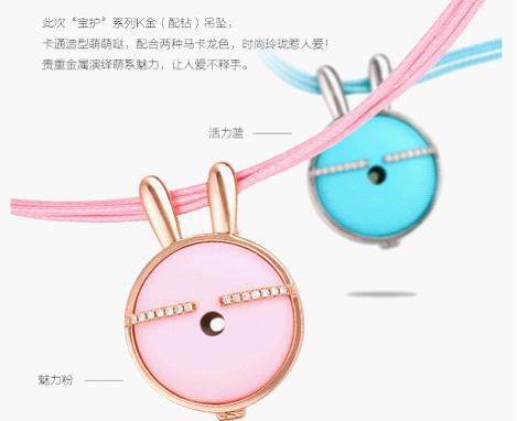 在此之前,或许人们对儿童珠宝的概念还停留在宝宝镯、路路通等贵重、偏装饰性的饰品上。而周大生将科技融入珠宝,突破了家长们对儿童只能珠宝的所有幻想。“宝护”产品是周大生首创的一款儿童智能K金镶钻吊坠,配有活力蓝和魅力粉两种颜色可供选择,马卡龙的时尚色调配合K金镶钻的萌兔框架造型简直颜值爆表。然而宝护吊坠可谓有“颜”更有实力,内含智能芯片,配合“宝护”APP使用,能实现多重功能。拥有萌系粉嫩的兔子造型的“宝护”产品有电子围栏、环境守护、双重保险等六大特色,其中最深受家长们喜爱的非“电子围栏”和“环境守护”莫属。当“宝护”佩戴宝贝走出警报范围时,家长的手机将自动发出警报声,提醒家长看管好宝贝。同时,“宝护”的芯片还设有监测UV紫外线强度、温度、湿度等功能,实时监测,保障宝宝的环境健康。