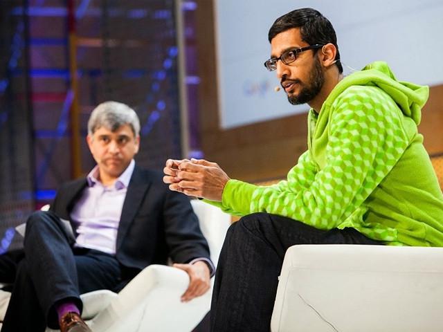 谷歌CEO桑达尔·皮查伊(图右)(图片来自Yahoo)