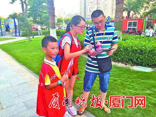“这位爸爸,我们是海沧两岸义工联盟的义工,正在做防止儿童意外伤害的宣传活动,这份宣传单您看看。”