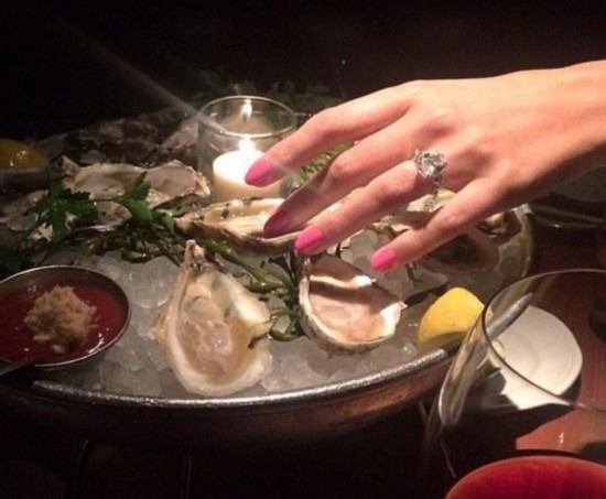 图为Dorothy在Instagram上分享自己与朋友享受高档美食,红酒,并戴着巨大钻石戒指的照片。