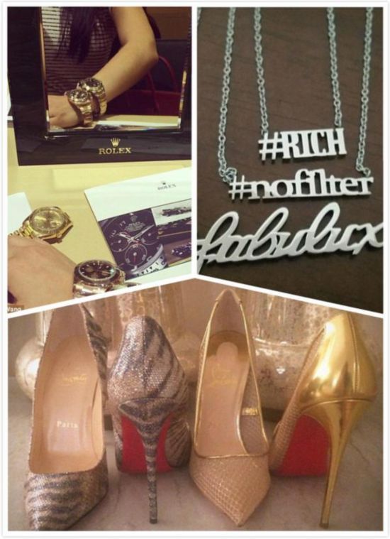 今天穿哪套裙子?搭配Prada还是Dior的鞋子?配LV还是Chanel的包包?这些几乎是Dorothy日常生活最关心的部分。比如图中的劳力士手表、爱马仕的配饰以及ChristianLouboutin的红底鞋子。