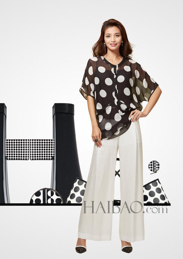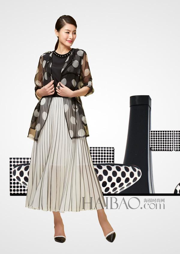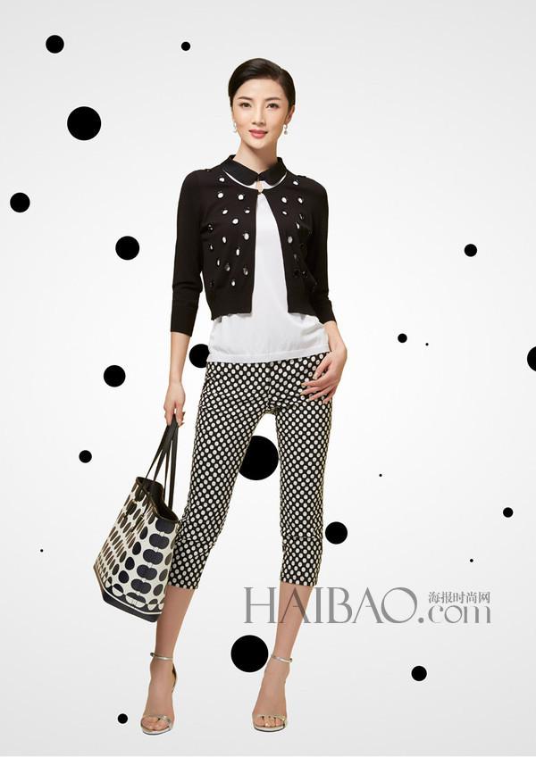 黑白波点加上经典的哈伦裤、赫本式复古A摆裙,潇洒、活泼,整身小波点图案,给人带来美妙的视觉感受,彰显优雅的女性魅力
