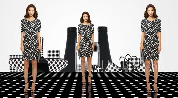 黑白波点的配色还原了服装的经典。两件套式黑色连体裤,精心点缀了白色波点打籽绣装饰。黑色修长款连衣裙,飘逸的雪纺裙摆与小V领的设计,都使其不落俗套。