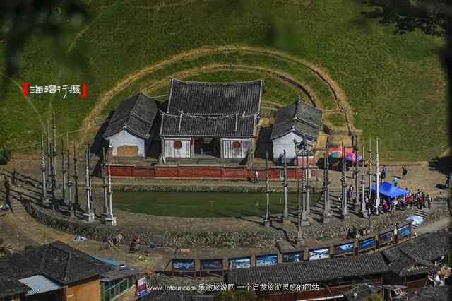 建于明朝弘治年间的殿堂式“张式家庙”德远堂。雕龙画凤,装饰典雅,宗祠前有半圆形池塘,塘边分别竖立着23根高达10米的石龙旗。