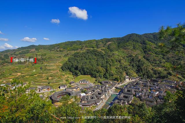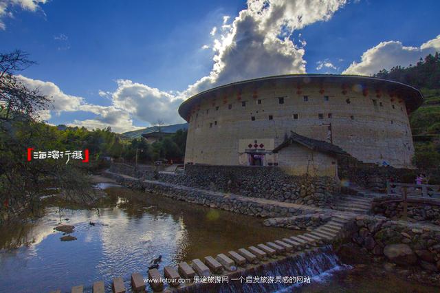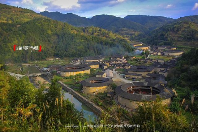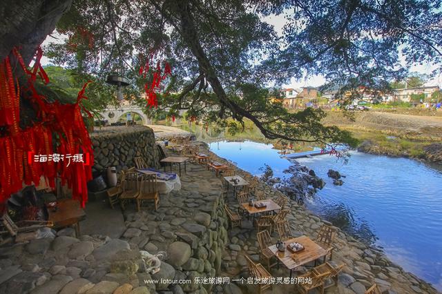 因一部电影而出名的景点有很多,云水谣算一个。在南靖这个遍植香蕉的山城,大概只有本地人才知道,这个村落叫“长教”。云水谣古镇介于书洋、梅林两镇之间,是闽南闻名遐迩的一个秀美山村,幽长古道、千年榕树、青山碧水、神奇土楼、宛如一幅浓墨重彩的山水画。古镇四面环山,纵横十余里,溪流间一座座小桥跨越其上,两岸村庄衣带相连;溪岸两帝,由13楼上面、上千年老榕树组成的榕树群蔚为壮观。如此老街、古道、过水桥构成一处乡村美景。