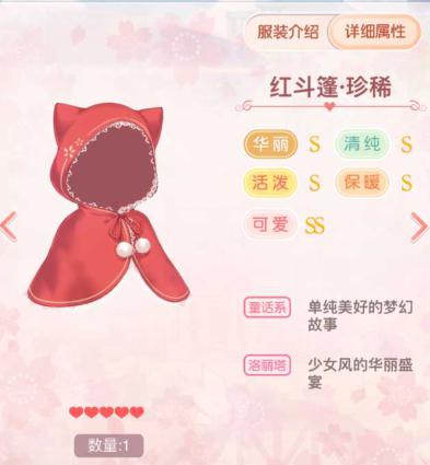 头饰:红斗篷·珍稀(21个红斗篷进化获得,红斗篷:公主级5-8)