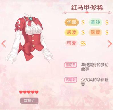 上衣:红马甲·珍稀(21个红马甲进化获得,红斗篷:公主级3-7)