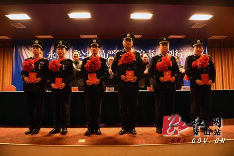 在当天的新闻发布会上,县政府副县长、公安局长李月红通报了蓝山县严打整治亮剑专项行动相关情况。永州市公安局党委委员、副局长秦建彪宣读了关于在此次专项行动中表现突出的干警给予记功嘉奖的决定。县委副书记朱阳辉宣读了关于表彰有功群众的决定。与会领导为受表彰的干警和群众进行了颁奖。