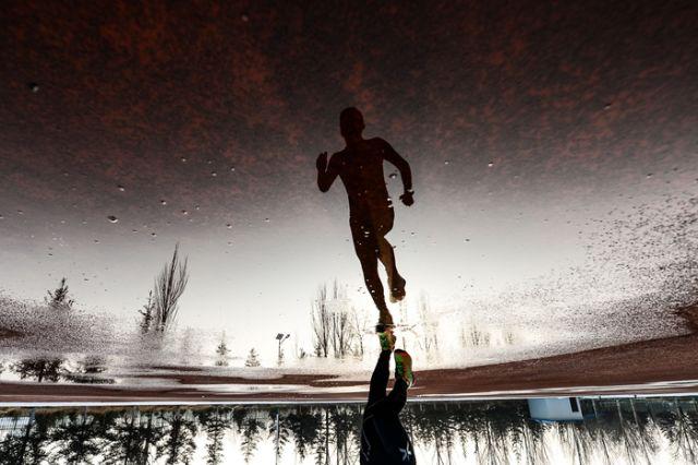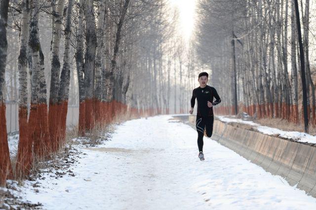 12月17日,许秀涛在青海多巴训练基地进行耐力训练。(照片经过旋转处理)