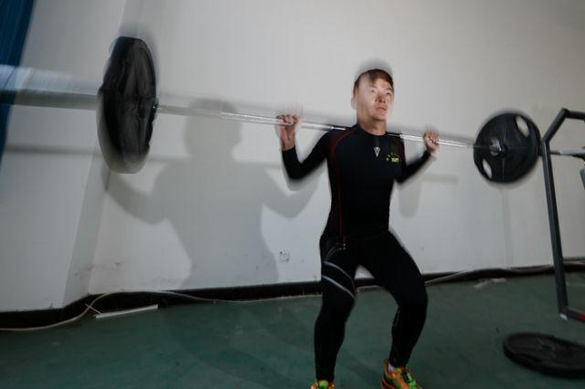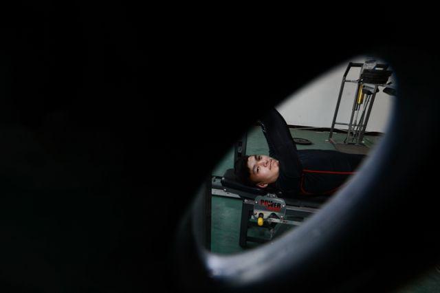 12月17日,许秀涛在青海多巴训练基地进行力量训练。
