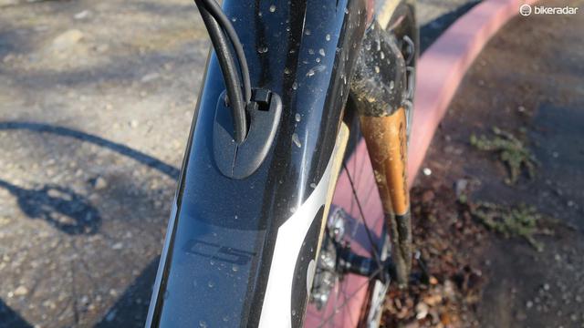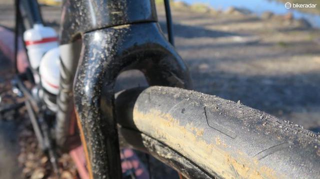 即使配置28毫米的马牌外胎,前叉与外胎的间隙仍然很大。
