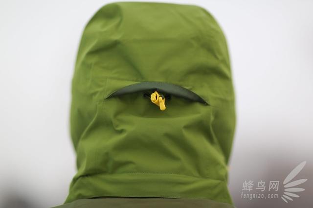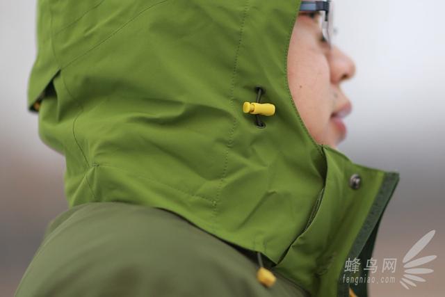 最后我来说下风帽,凯乐石这款冲锋衣的风帽为可拆卸设计,不需要风帽的时候可以很轻松的进行拆卸。另外这款衣服的风帽还带有收紧绳,不仅在侧面有,在脑部后侧也有,能对头部进行最严实的包裹,可有效的抵抗严寒。