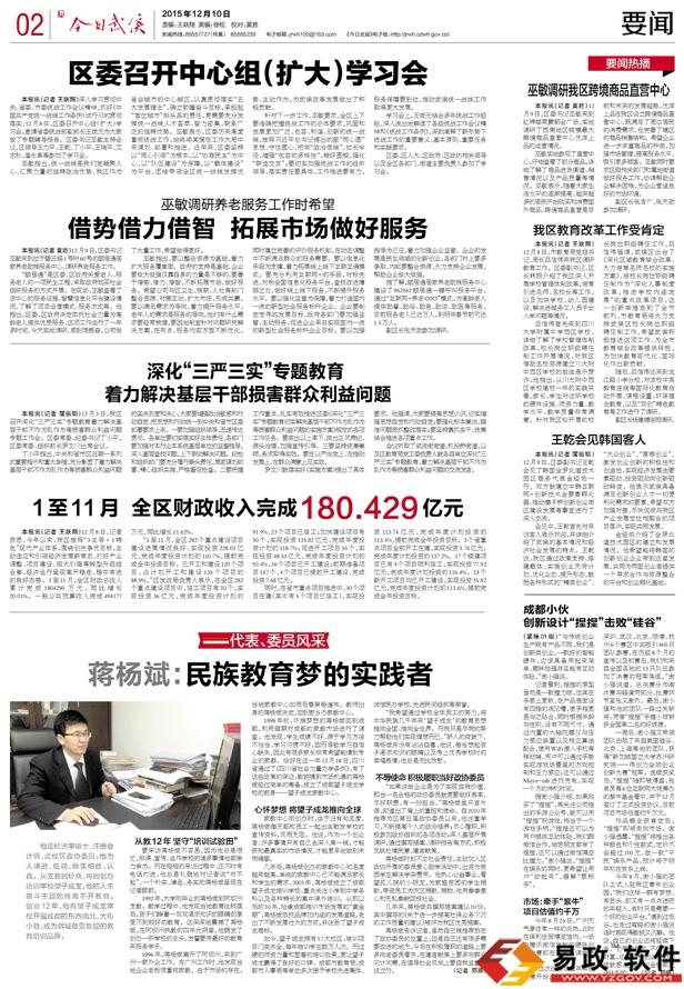“如果说做企业是为了实现自我价值,那当一名合格的政协委员就更要做好表率,尽好职责,有一份担当。”蒋杨斌虽只言片语,却道出了肩上的重担和使命。自2010年推荐为区第五届政协委员以来,他注重学习,不断提高个人的政治修养;尽心履职,积极参加政协组织的各项活动;深入基层开展调研,通过撰写提案、调研报告等方式,积极反映社情民意、建言献策。