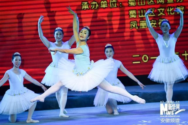 12月30日,合肥市蜀山区婷立艺术团在表演舞蹈《蓝色多瑙河》。当日,安徽省合肥市蜀山区开展“文艺汇演迎新年”活动,辖区多个文艺表演团体通过腰鼓、舞蹈等传统文艺节目,迎接新年的到来。 新华社记者张端 摄