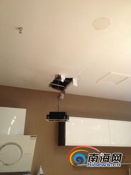 杨女士店内天花板射灯、墙体脱落