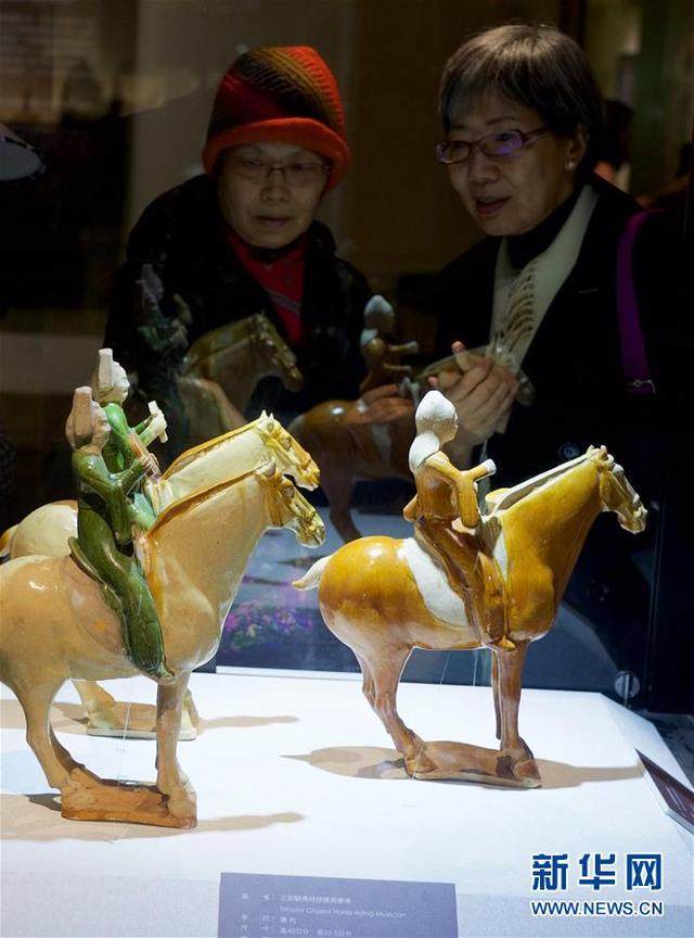 12月4日,观众在台北欣赏河南博物院收藏的唐代三彩骑马持排箫男乐俑。当日,由台湾历史博物馆、河南省文物局、台湾鸿禧艺术文教基金会共同主办的“盛世风华—洛阳唐三彩特展”在台湾历史博物馆举行开幕典礼。这是分隔两岸的洛阳唐三彩66年来首次合璧展出,共展出两岸各60件共计120件唐三彩精品,展现了唐三彩的工艺风华及大唐盛世荣光,见证两岸对中华文化的共同传承。新华社记者姜克红摄