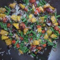 15. 接着出锅的样子! 其实结果我不是很满意因为这些配料全熟了颜色不是很鲜艳没有炒锅的颜色好。下次不会这样做了!但是味道还是可以接受的。