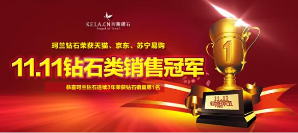 在刚刚尘埃落定的双十一狂欢节上,珂兰钻石表现尤为突出,一举赢得天猫、京东、苏宁易购等各大B2C平台钻石销售第一。其中,以4219万的线上成绩赢得天猫钻石类销售第一,整个珠宝类销售第二,成绩直逼位于首位的全球市值最大的纯珠宝商周大福。
